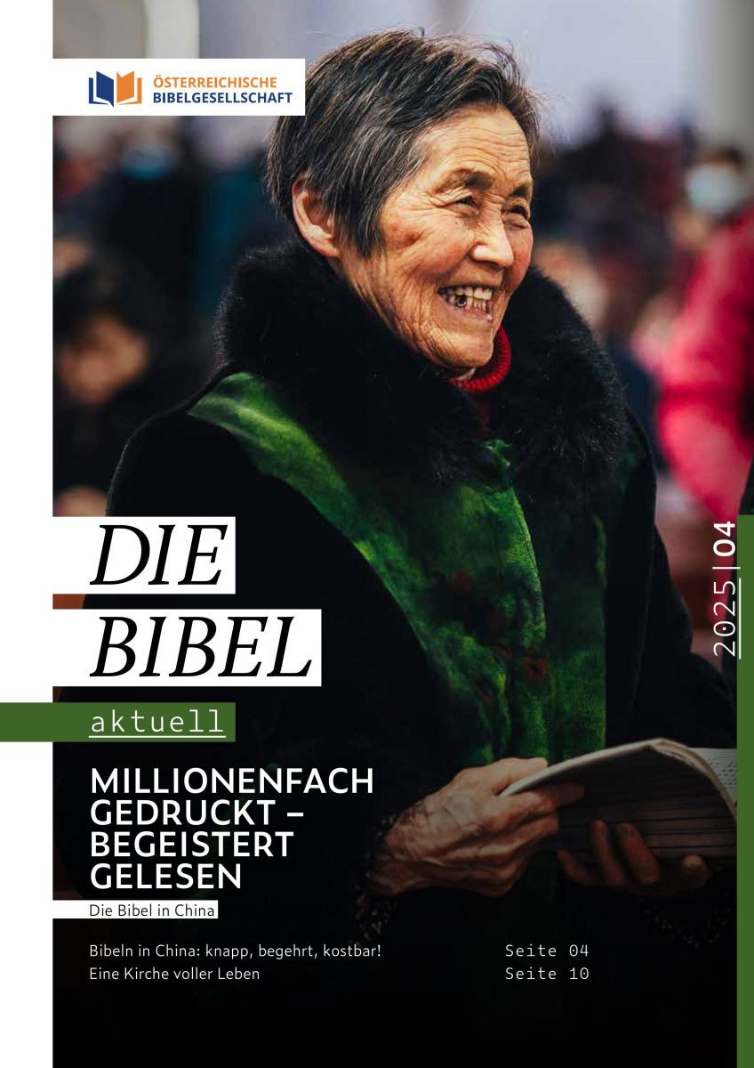 Chinesische Christen lieben die Bibel. Zum Gottesdienst bringen viele ihre oft sichtlich zerlesene Bibel mit, lesen darin und machen sich Notizen. In Gruppen und Kreisen, aber auch privat wird regelmäßig die Bibel gelesen. Die Gemeinden in China wachsen und es ist erstaunlich, dass Jahr für Jahr zwischen einer halben und einer Million Menschen in China zum christlichen Glauben finden! Doch dieses erfreuliche Wachstum bringt auch Herausforderungen mit sich. Erfahren Sie in der aktuellen Ausgabe von die Bibel aktuell, wie lebendig der christliche Glaube in China ist.